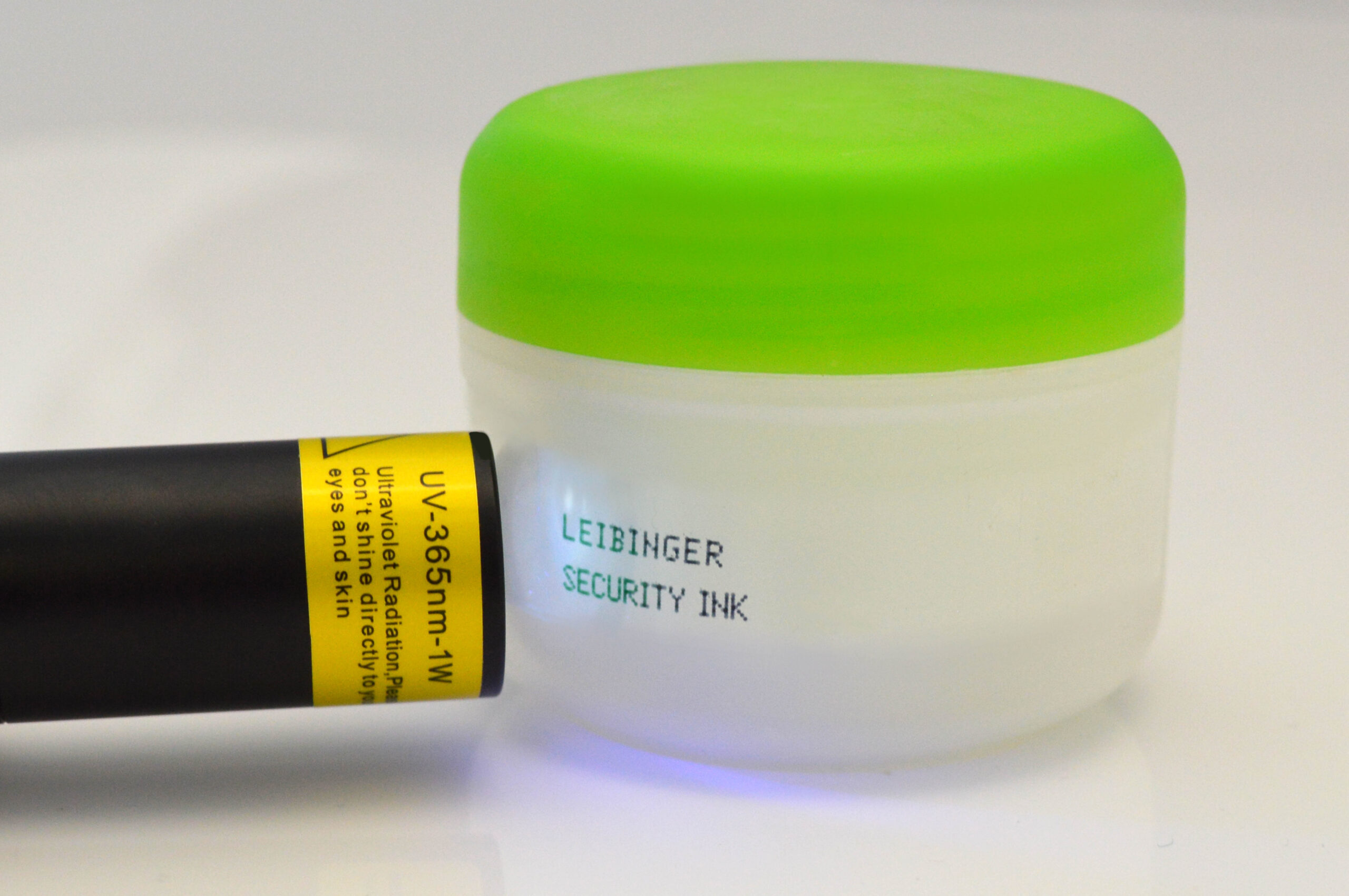 Odporne chemicznie: atramenty LEIBINGER utwardzane promieniami UV charakteryzują się dużą odpornością na agresywne chemikalia i rozpuszczalniki, takie jak alkohol, nafta, benzyna, środki czyszczące itp.